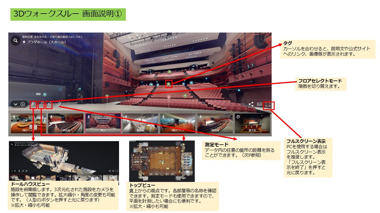3Dツアーが可能な施設は現在下記のとおりです。